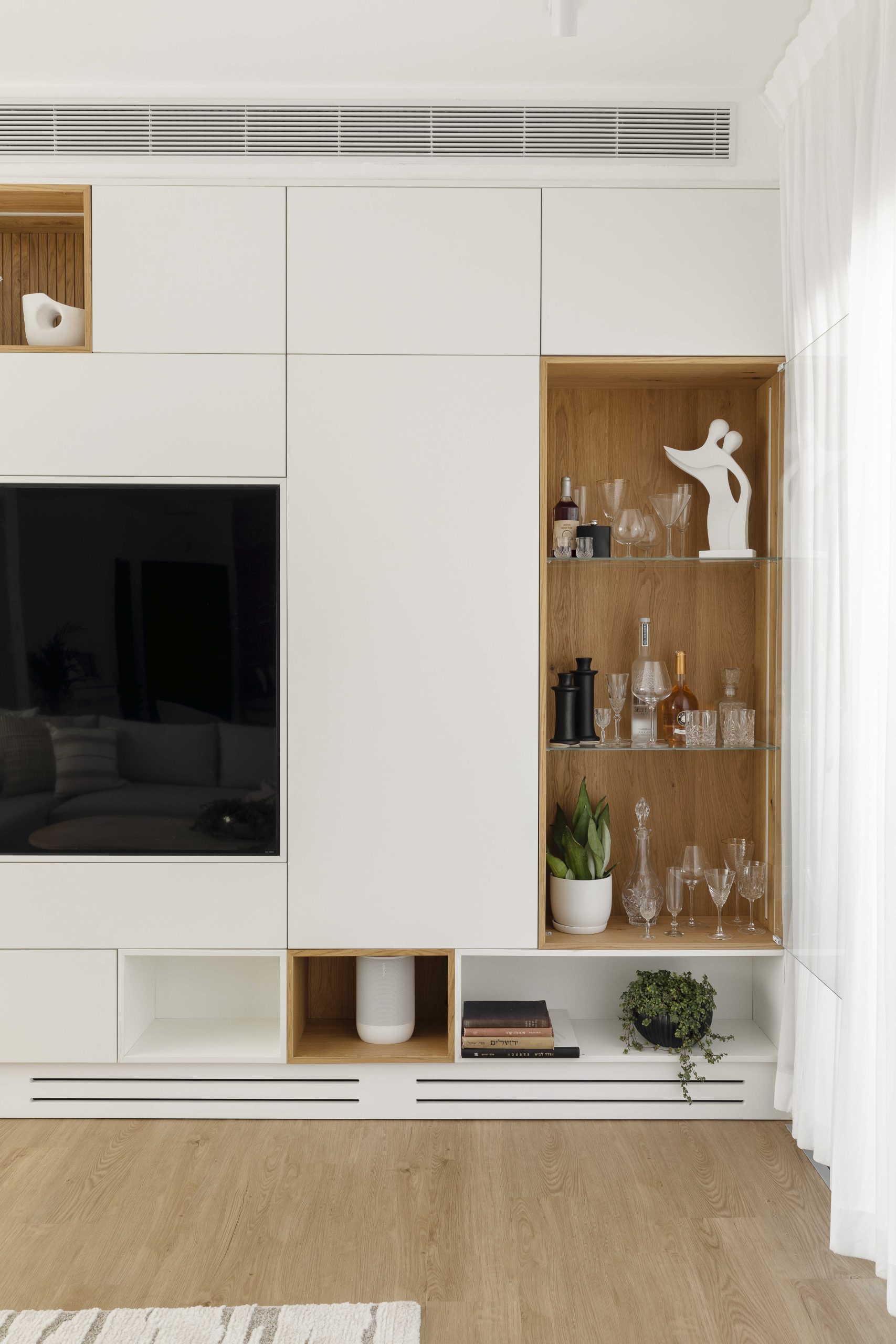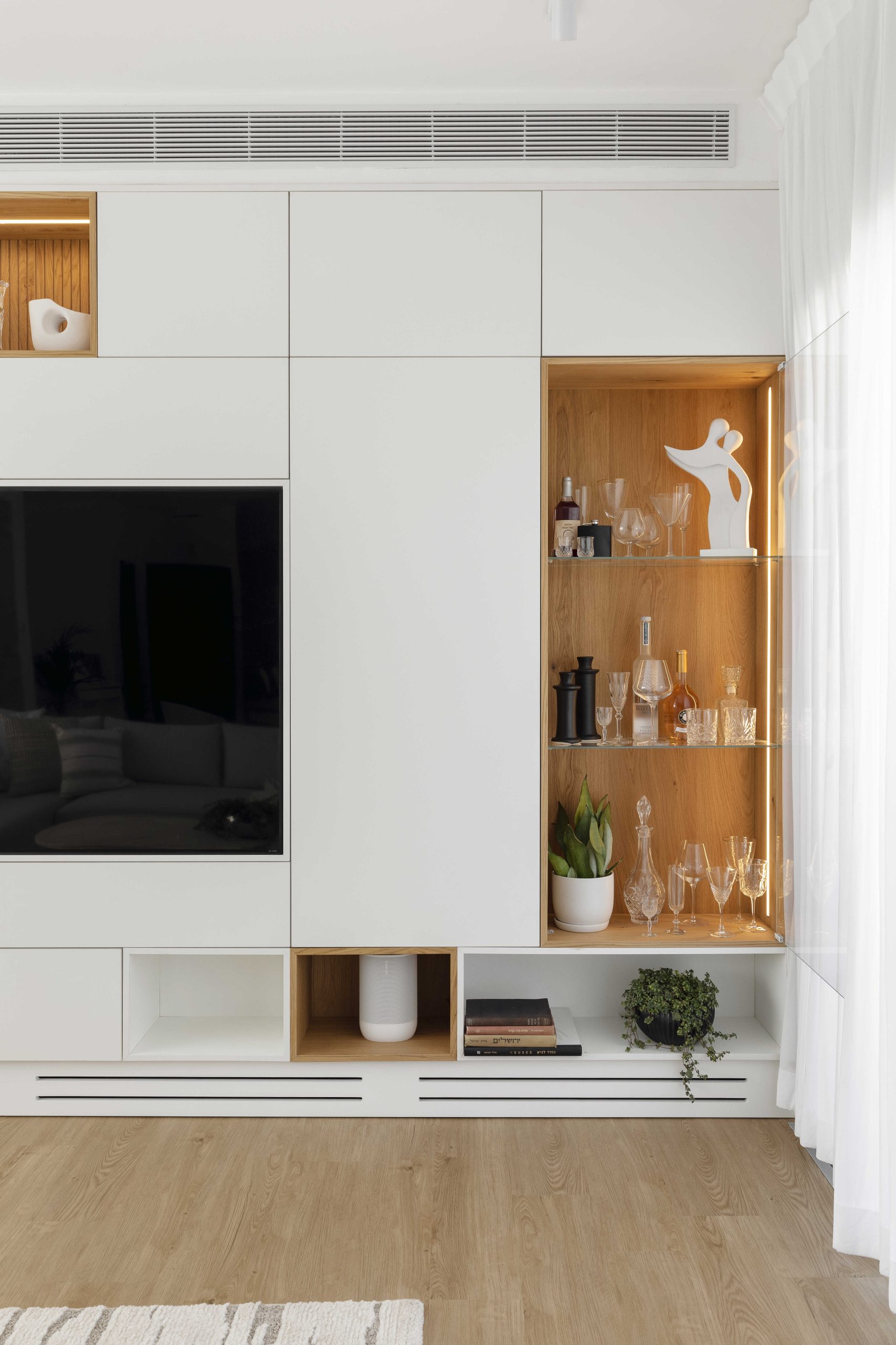 - תכנון קיר סיפרייה שיכלול בתוכו מיזוג אוויר, תאורה ותאי אחסון סמויים וגלויים.