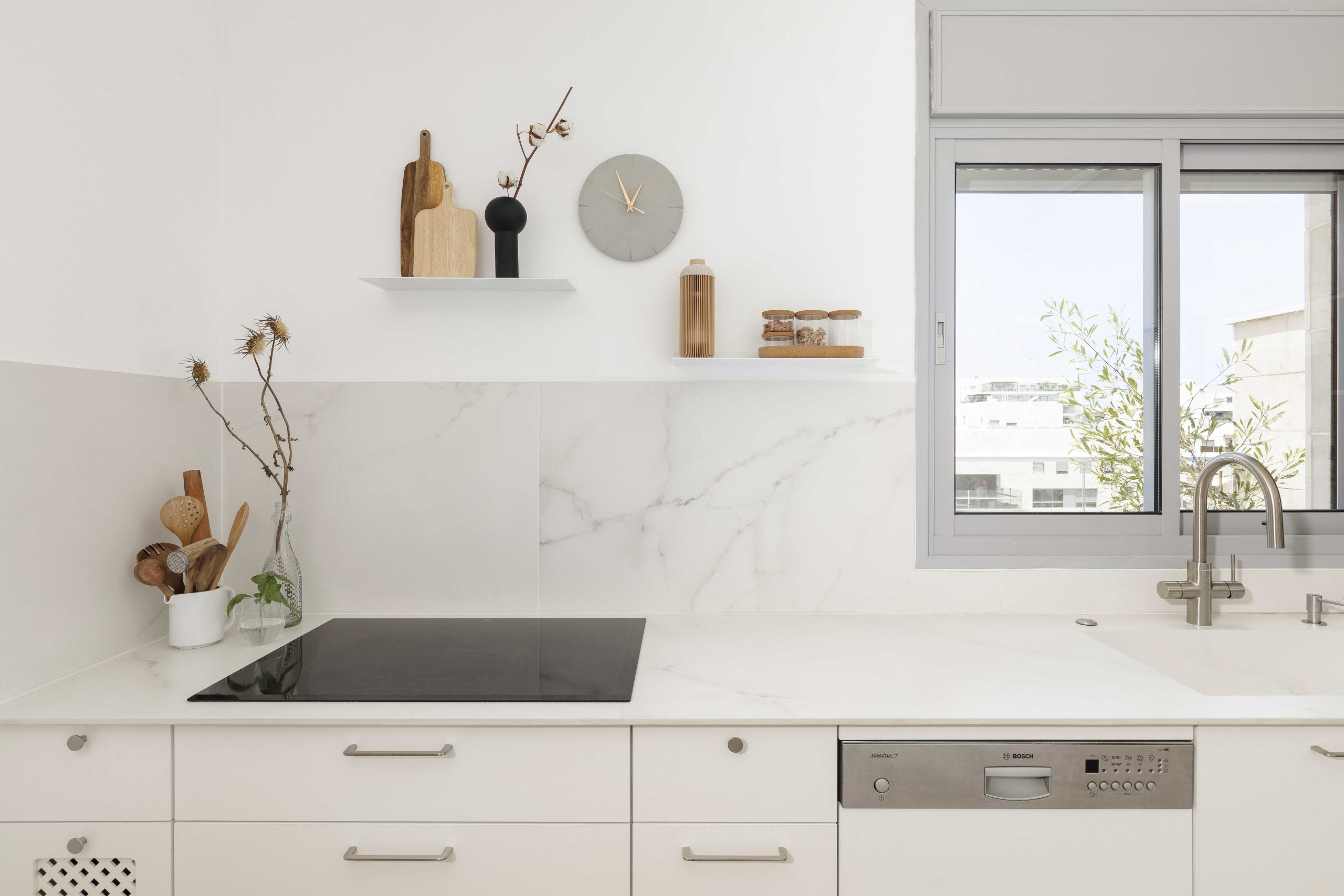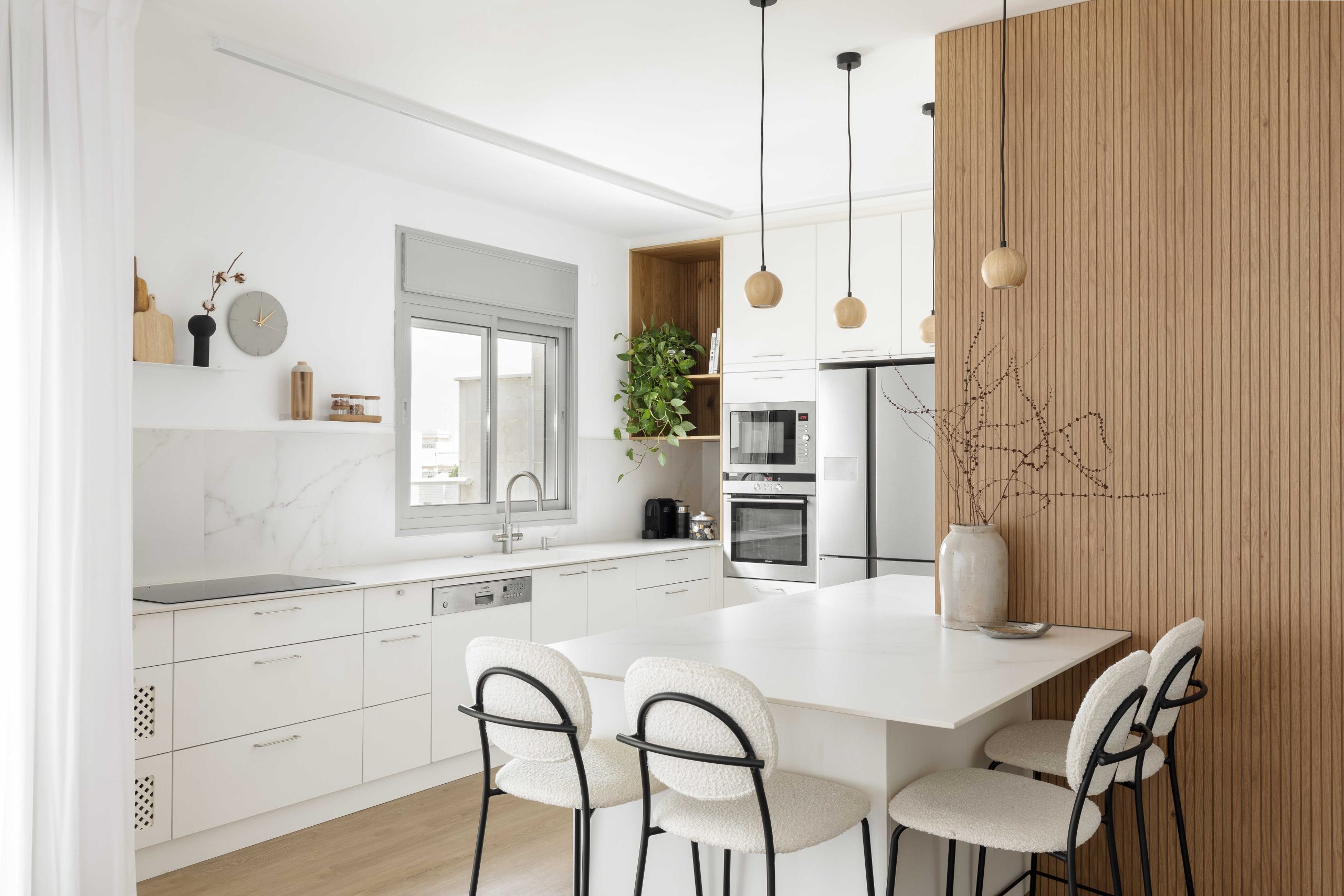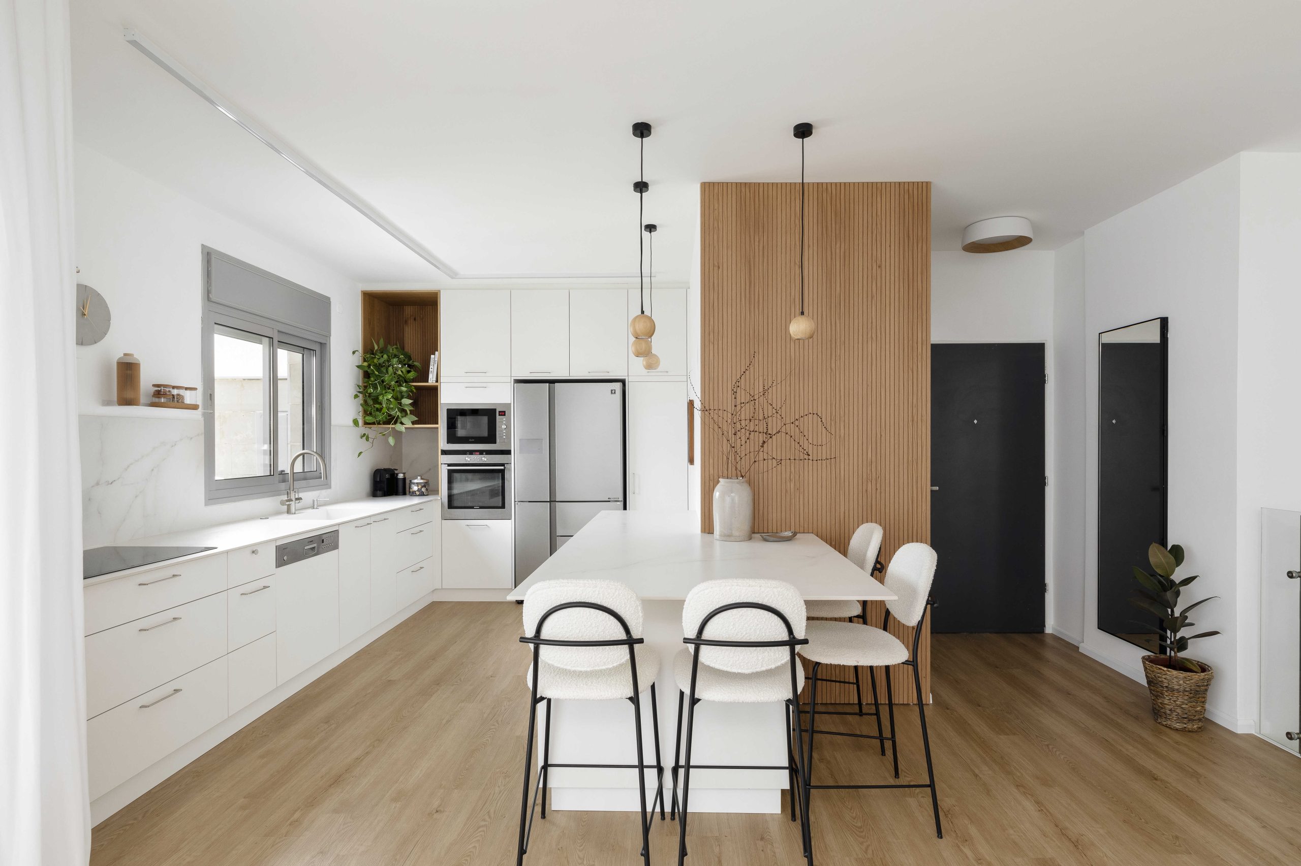 אז התחלנו את העבודה והייתה פה עבודת צוות מטורפת שללא שיתוף פעולה מלא של כולם לא היה אפשרי לייצר את החלל המושלם הזה שהוגדר מנקודת הפתיחה כחלל עם קו עיצובי מודרני, נקי, לבן בשילוב של עץ, נגיעות קלות של שחור וצמחייה.