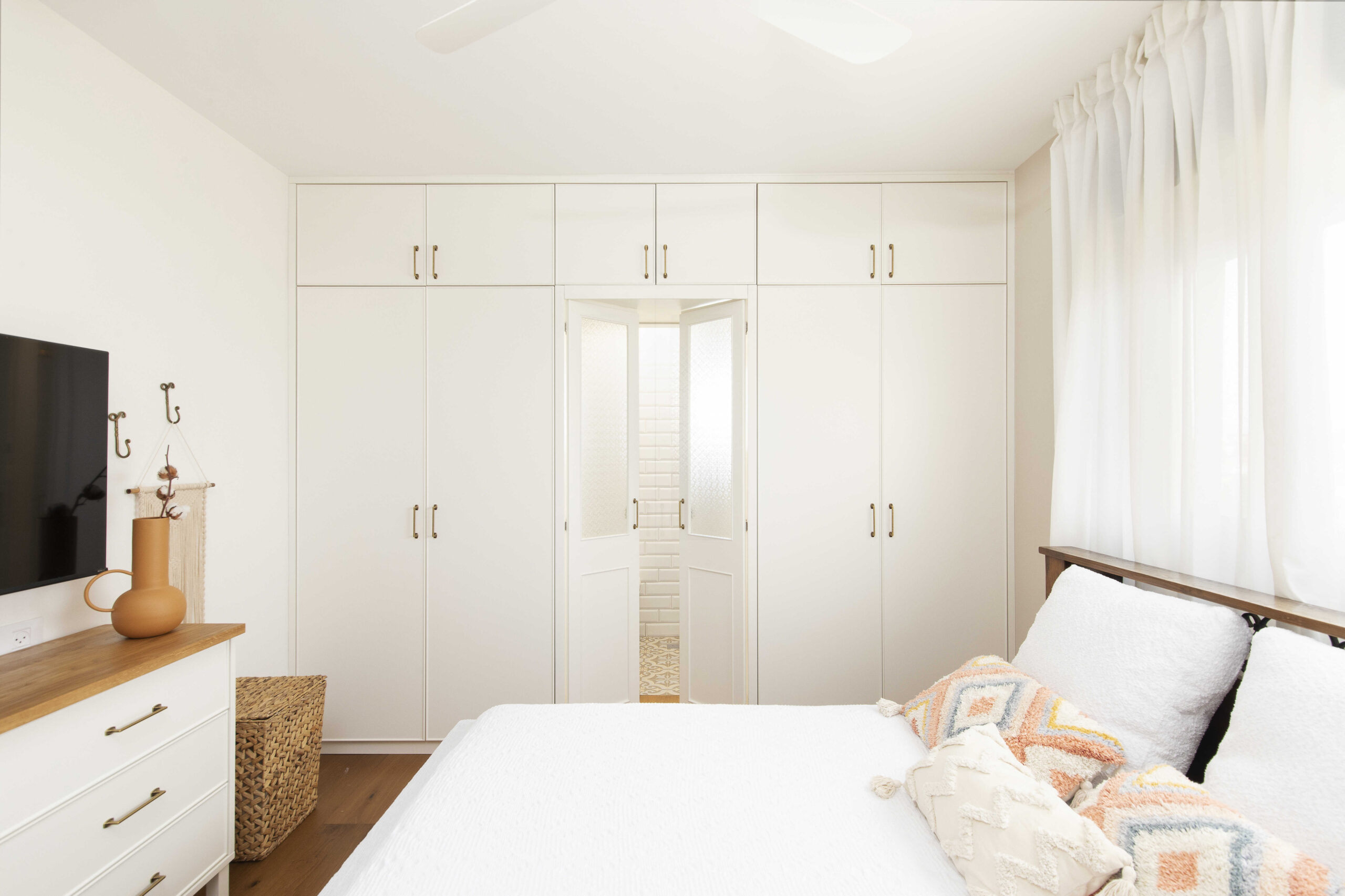 התכנון כלל הריסה של כל הקירות הפנימיים של יחידת ההורים ובנייה מחדש כאשר ארון הבגדים יהווה מחיצה בין חדר השינה לחדר הרחצה כך למעשה הגדלתי להם פי 2 את חדר הרחצה לעומת מה שהיה להם קודם.