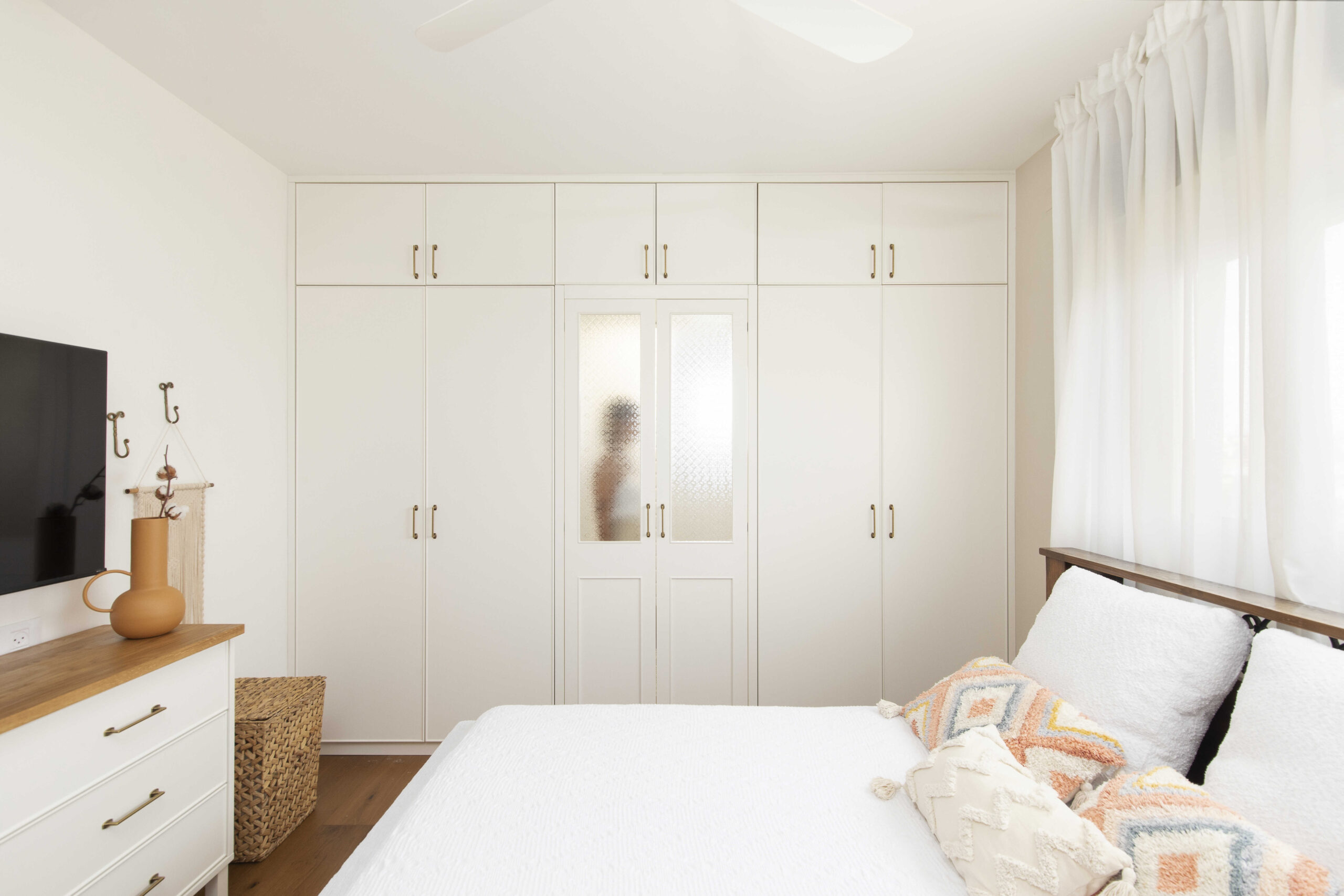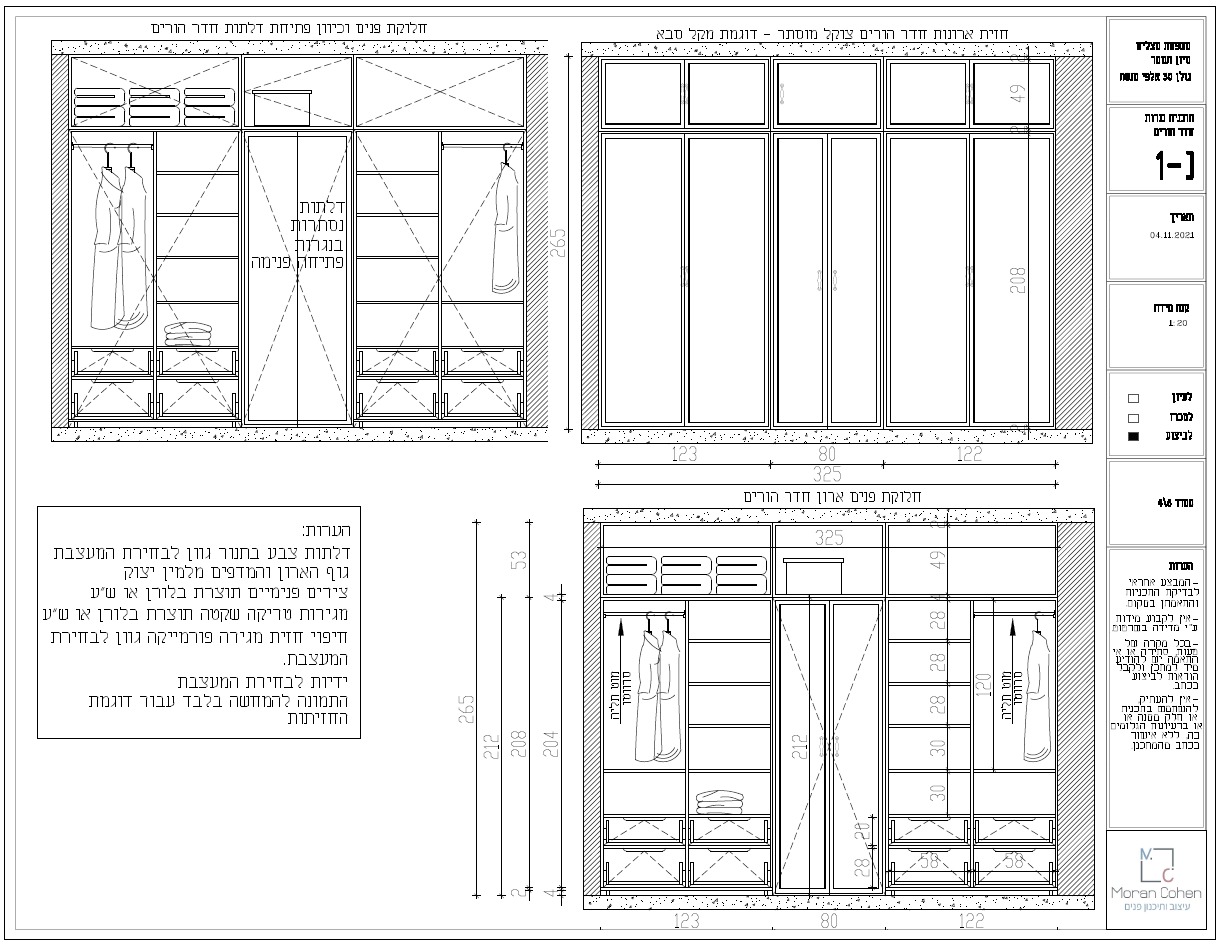 ארון הבגדים הפך להיות האלמנט הכי חשוב בחדר אותו תכננתי ודייקתי עד שהגעתי לתוצאה מושלמת החל מתכנון מיקום דלת המעבר לחדר הרחצה, לתכנון הפנים שלו וכמובן לתכנון החזיתות.